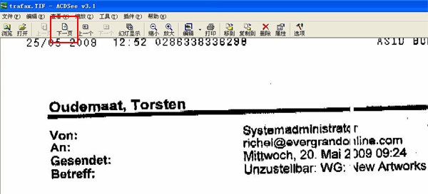 别人给我发送的传真邮件有两页,为什么263企业邮箱中只有一张图片?